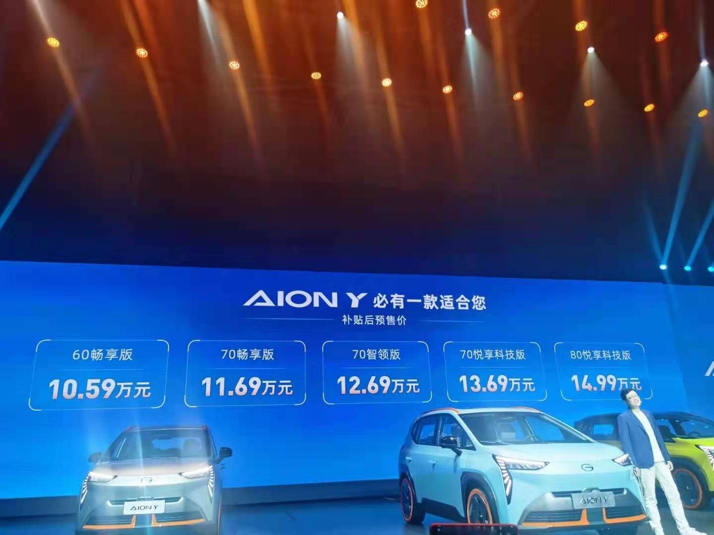 3月29日,一场以年轻、时尚、炫动为主题的广汽埃安AION Y预售发布会在杭州运河文化发布中心举行,活动现场,新车共推出了包括60畅享版、70畅享版在内的5款车型,预售价格为为10.59-14.99万元。详情如下: