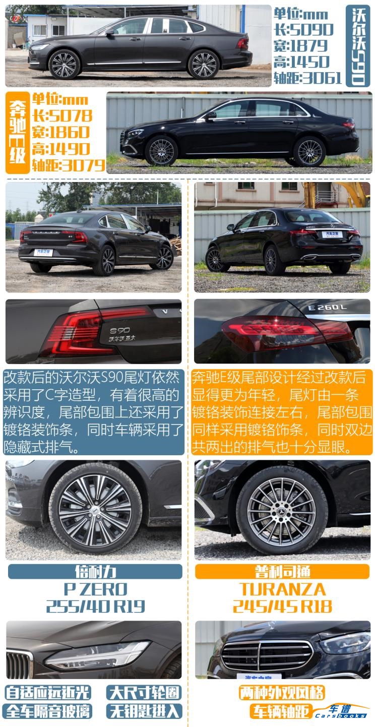沃尔沃S90刚经过一次年度小改款,共推出了6款车型,售价区间为40.69-61.39万元,其中4款为2.0T发动机 48V轻混动力,2款为插电混合动力。这次我们选择的是搭载2.0T发动机 48V轻混系统的2022款 B5 智远豪华版,官方指导价为45.09万元。同时对动力更有一步需求的消费者则可以选择T8车型。新款奔驰E级长轴距版也是今年3月正式上市,共推出了10款车型,售价区间为43.99-56.29万元。新车依旧是有标准版与运动版两种外观设计风格,相比于旧款车型最大的变化是E 260 L车型换装了2.0升四缸涡轮增压发动机。